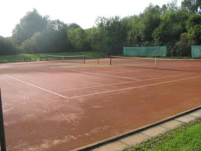 Von den Tennisplätzen liegen jeweils 3 Plätze links und rechts der Egau. Die Plätze sind mit einer Brücke verbunden.